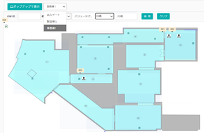 マスタで登録された建物や車両などの図面と、設置したBLEビーコン(座席など)が表示されます。