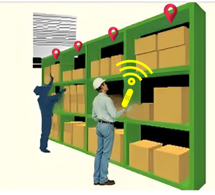 作業スタッフ様が通常作業で使用するハンディターミナルで棚に設置されたBLEビーコンを受信し位置判定を実施します。
