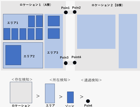• お客様の要件が社員の行動パターンを分析したい場合(或いは倉庫内のカゴ車の稼働率管理や在庫管理)詳細な位置情報よりも大体の場所(ゾーン)が判れば良いというケースが殆どだと思います。